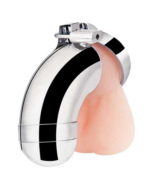 The Lockmaster takes chastity to a unique new level with its sleek, inverted design, crafted from durable, body-safe stainless steel for maximum restriction. This advanced design provides an elevated level of confinement beyond traditional cages, appealing to serious fetish enthusiasts who seek a highly specialized, durable, and unique look.