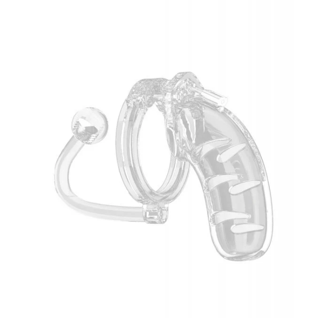 Similar to the Model 10 but slightly longer at 4.5 inches, this Man Cage continues to offer the versatility of a detachable butt plug alongside a comfortable, customizable polycarbonate cage. It’s designed to give the keyholder full authority over sexual release while providing the wearer with a unique sensation combination of restriction and internal stimulation, even when traveling, thanks to the tie-wrap lock option.