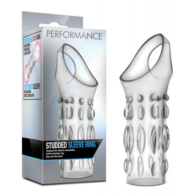 Make your rod into the ultimate sex toy with the Performance Studded Sleeve Ring! The cock sleeve with attached strap for your nut sack will surround your throbbing manhood to make it even thicker and studded, while the strap keeps the sleeve securely strapped to your rod. ! Show your partner the ultimate time with...