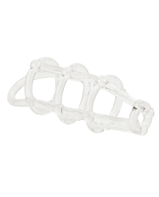 Wrap your shaft in this soft, stretchy cage for longer-lasting pleasure. It gives you support while your partner enjoys the extra texture and firmness.