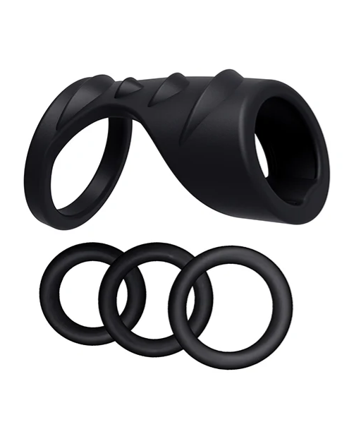 This kit means business — four different ways to stay hard and play longer. It includes rings of multiple sizes and a textured sleeve, giving you tons of control and variety.