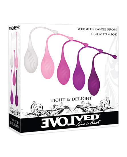 Achieve ultimate pelvic floor strength and enhanced intimate experiences with the Evolved Tight & Delight 5 Pc Weighted Kegel Ball Set. This set of five individually weighted balls allows for customizable and progressive training.