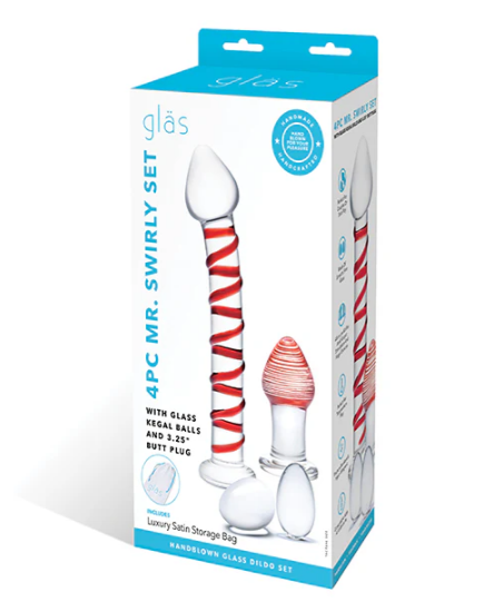 Mr. Swirly 4-Piece Glass Pleasure Set with Kegel Balls & Beginner-Friendly Butt Plug – Red