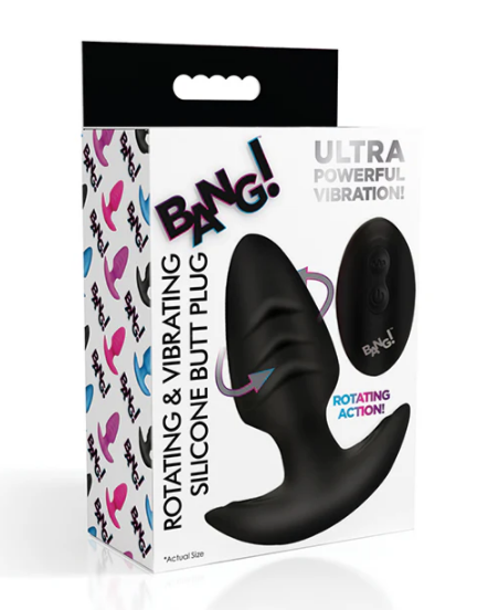 Bang! Rotating & Vibrating Tapered Butt Plug w/Remote – Black