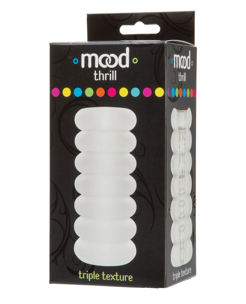 Verdreifachen Sie Ihren Spaß mit Mood Thrill! Hergestellt aus unserem unglaublich lebensechten ULTRASKYN™-Material, verfügt dieser handgehaltene Stroker über drei interne Texturen für vielseitige Stimulation. Der einzigartige dreifache Textur-Vergnügungstunnel umfasst große Massageperlen am Eingang, dicke Rippen in der Mitte und stimulierende Perlen, die zu einem engen Abschluss am offenen Ende zulaufen. Leicht zu reinigen. Er wird sogar bei Berührung warm!