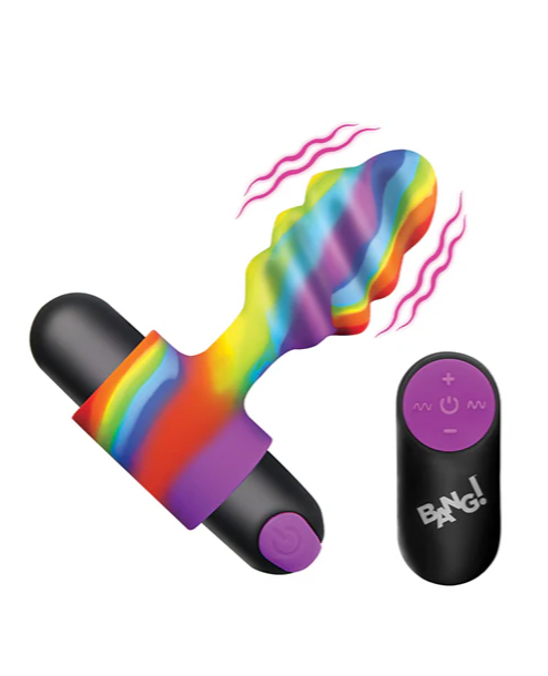 Αυτό είναι ένα διασκεδαστικό, ζωντανό σετ σχεδιασμένο να μεγιστοποιεί την εσωτερική απόλαυση: το βύσμα σε σχήμα φελλού με υφή προσφέρει βαθύ εσωτερικό μασάζ για εντονότερες αισθήσεις, ενώ ο συνοδευτικός δονητής bullet προσθέτει εξωτερικό βόμβο. Κατασκευασμένο από κορυφαίο, ασφαλές για το σώμα, μεταξένια απαλό σιλικόνη, η κωνική άκρη του βύσματος επιτρέπει εύκολη εισαγωγή, ενώ οι ισχυροί κινητήρες του σετ (4 ταχύτητες, 7 μοτίβα) ελέγχονται εύκολα μέσω ασύρματου τηλεχειριστηρίου. Το Rainbow Butt Plug και ο συνοδευτικός bullet είναι και οι δύο επαναφορτιζόμενοι και ανθεκτικοί σε πιτσιλιές, εξασφαλίζοντας ασφαλή, προσαρμόσιμη, δονητική απόλαυση που είναι ιδανική για ατομική εξερεύνηση ή για να εισαγάγει ο σύντροφος μια απρόσμενη συγκίνηση.