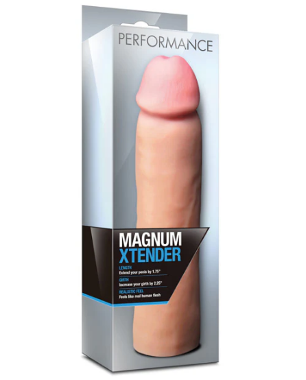 Our Magnum Xtender extends your penis by 1.75 inches AND increases your girth 3 inches all the way around! Your partner will love the new you. Our proprietary X5 material was developed to mimic the feel of the human body. It does not contain latex, phthalates or chemical fragrances. That means its body safe. Magnum...