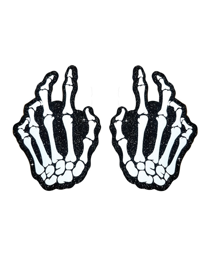 Neva Nude Holographic Skeleton Hands Pasties - White/Black O/S – Available in Australia