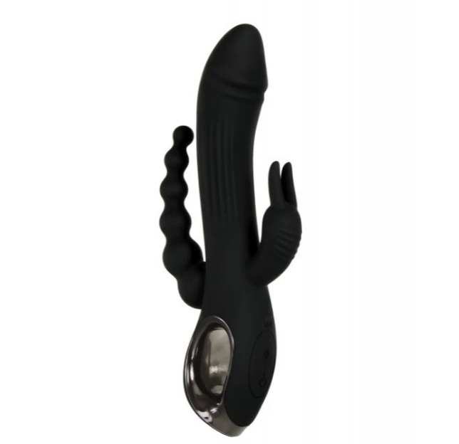 Why stop at one or two when you can have a Trifecta? This incredible toy is designed for the elusive Trigasm, stimulating three erogenous zones simultaneously! It features a powerful, realistic phallic-shaped shaft for internal vibration, hard-working bunny ears for your clitoris, and a beaded anal shaft that gently completes the tantalizing pleasure triangle. With three motors in total, you can find the perfect rhythm to leave you weak-kneed, and it’s completely submersible for the ultimate wet and wild adventure!
