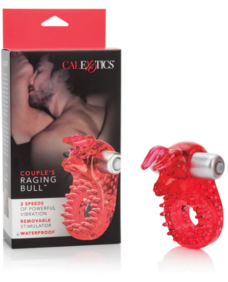 Jump on the Raging Bull for the ultimate lovemaking experience designed to please both of you! This durable, stretchy enhancer provides him with rock-hard support and increased girth, giving him the confidence to last longer. For her, the removable waterproof bullet stimulator (with three speeds) sends powerful, targeted vibrations right to the clit, while the ring’s targeted nodules buzz the entire area for incredible all-over pleasure. It's totally waterproof and easy to use (just pop in the watch batteries), promising buzzing, resonating, and ultra-stimulating waves of pleasure for both partners.
