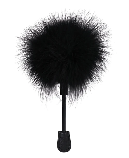 Este pequeño cosquillero de plumas negro te provocará y estimulará a ti o a tus parejas de la manera justa. Plumas suaves proporcionan una estimulación delicada. Longitud total del cosquillero aproximadamente 7.75 pulgadas.