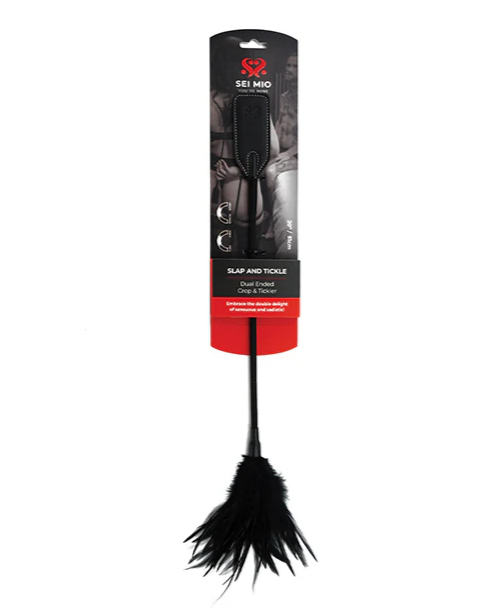 Disfruta de la mezcla perfecta de provocación y emoción con el Sei Mio Slap and Tickle, un látigo y cosquillero de doble extremo diseñado para intensificar cada momento de juego sensual. Un extremo presenta plumas suaves y delicadas que se deslizan sin esfuerzo sobre la piel, creando un toque ligero como una pluma que provoca...
