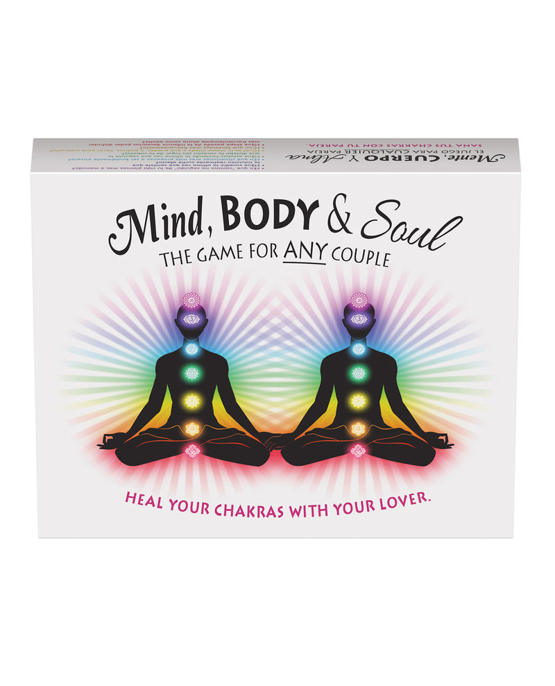 Raggiungi l'illuminazione giocando a Mind. Body & Soul. Mentre ti muovi sul tabellone, tu e il tuo partner vi ponete domande progettate per aprire i vostri chakra. Ci sono 20 domande per carta e due set di carte per i sette chakra, per un totale di 240 domande per la guarigione dei chakra. Vinci allineando tutti e 7 i tuoi chakra e il tuo partner ti offre una ricompensa intima per allineare i chakra sacrale e del cuore. Include: un tabellone, 14 carte chakra, 14 monete chakra, 2 segnalini, un dado e le regole del gioco. Le domande sono neutrali rispetto al genere, quindi questo gioco funziona per QUALSIASI coppia.