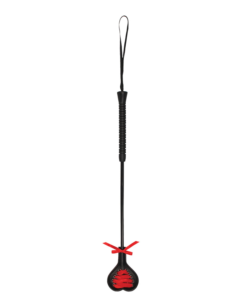 Questo crop a forma di cuore con manico lungo e pizzo nero è il modo perfetto per disciplinare il tuo partner.