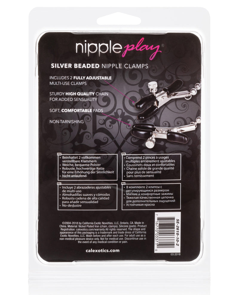As Presilhas de Mamilo com Contas Prateadas Nipple Play são o adorno exótico perfeito para estimulação sensível dos mamilos e para um prazer prolongado na brincadeira com os mamilos. As presilhas fáceis de apertar e totalmente ajustáveis são ideais para usuários iniciantes e experientes que desejam explorar o erotismo do prazer/dor. Use as mini presilhas para excitação e prazer direto nos mamilos ou em outras áreas super sensíveis do corpo.