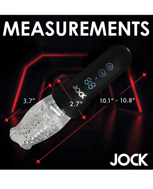 With the spinning, thrusting, vibrating masturbator from JOCK, you'll never want to use any other toy again! Featuring a clear, TPE sleeve with a tantalizing, mouth-shaped opening, this device is textured with small nubs designed to caress and stimulate with each stroke. Enhance your solo sessions with 9 modes of spinning and thrusting, complemented by powerful vibrations available in 3 speeds and 6 patterns. Crafted from quality, body-safe materials that are latex-free and phthalate-free, this toy ensures safety and comfort. Conveniently rechargeable via the included USB cable, it's also splashproof with an IPX5 rating, making it perfect for wet play, though not suitable for the shower. Elevate your pleasure game now!