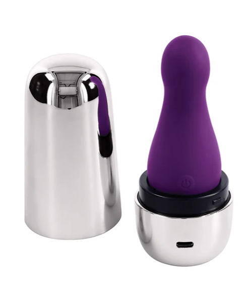 Denna vibrator är bokstavligen namngiven för resor! Den kommer med sitt eget silverfärgade hårda resefodral som också fungerar som laddningsdocka. Det är den ultimata "stealth"-leksaken som ser mer ut som en högteknologisk pryl än en vibrator.